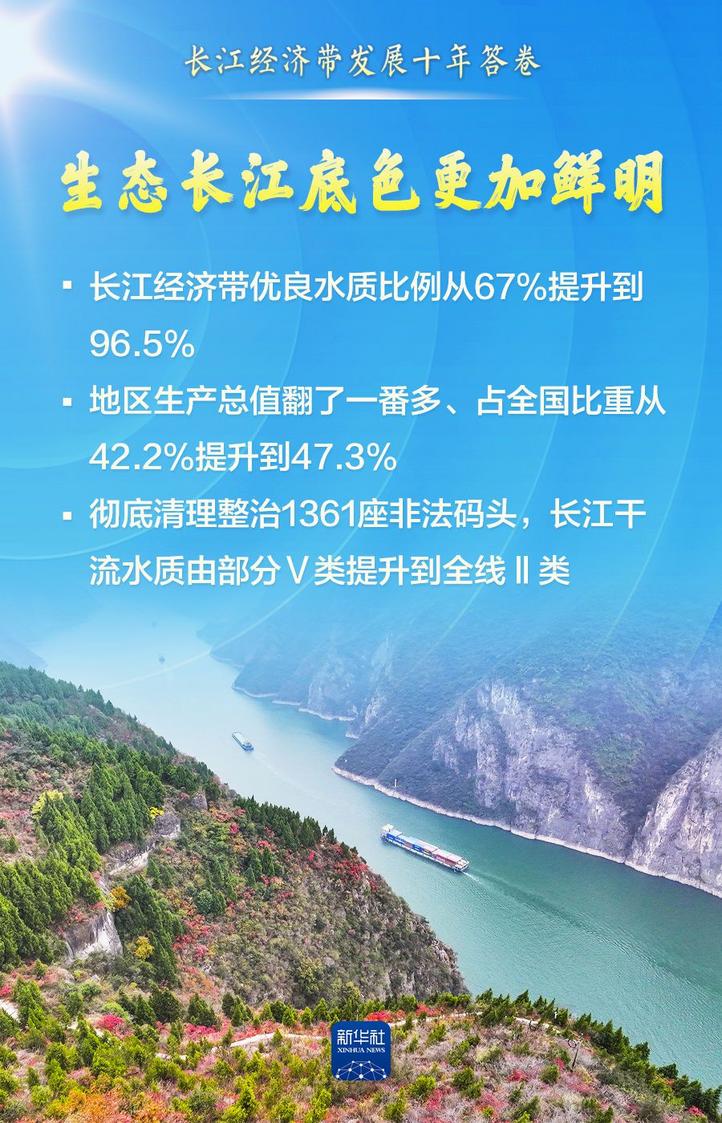 长江经济带发展是我国区域重大战略。十年来现货配资网,长江经济带共抓大保护、不搞大开发,优良水质比例从67%提升到96.5%;地区生产总值翻了一番多、占全国比重提升到47.3%;形成了汽车制造、电子信息等一批世界级产业集群……保护和发展的相互促进、相得益彰,书写了人与自然和谐共生的中国式现代化时代篇章。